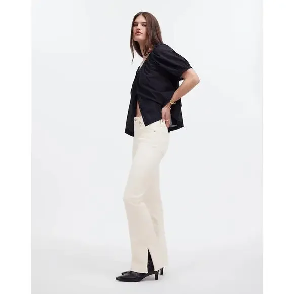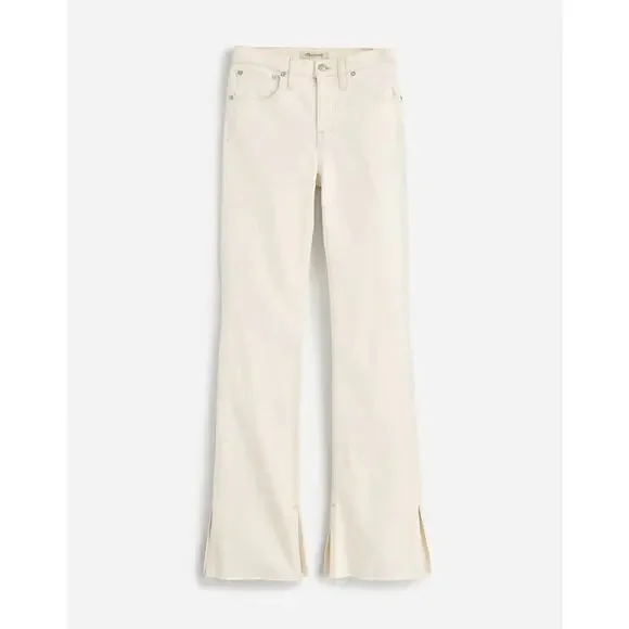 ***Item is New With Tags***Item #: NP502Color: Vintage CanvasSize: T28The cut: an evolution of our fan-fave Cali Demi fit, these mid-rise jeans have a full-length kicked-out flare leg and the holds-you-in sorcery of our Magic Pockets™ in front. Special details include slit side seams and raw hems.The fabric: premium vintage-y stretch Cone® denim that hugs the body and bounces back like a pro (AKA no 3pm bagginess).Classic ecru wash.9 3/4" rise, 17 1/4" leg opening, 34" inseam.90% cotton/8% REPREVE® recycled polyester/2% elastane.Do Well: By buying cotton products from Madewell, you're supporting our investment in Better Cotton's mission to help cotton communities survive and thrive while protecting and restoring the environment. This product is sourced through a system of mass balance and therefore may not contain Better Cotton.Machine wash.Imported.Madewell.com onlyLine Across Brand Tag To Prevent Returns