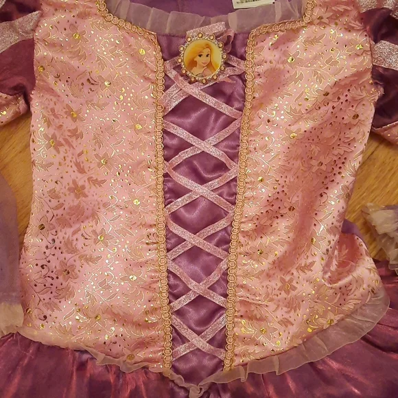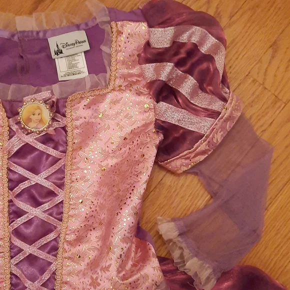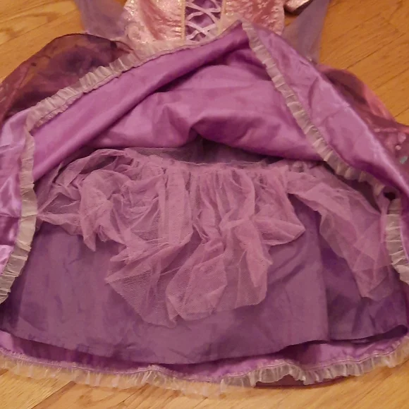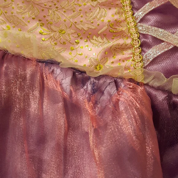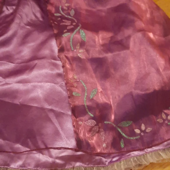 Aurora Sleeping Beauty dress from Disney Parks. Pictures show skirt layers. Bodice has Pictures of princess 👸 Aurora. One obvious blemish is the tear where the Bodice meets the skirt (see last picture) which could be left alone or an easy fix for someone. Otherwise in good condition and ready for dress up!Size medium, MHappy Poshing 😊